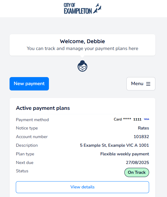 Log into Payble by either following the QR code on your rates notice, the link in a previous text message from us.