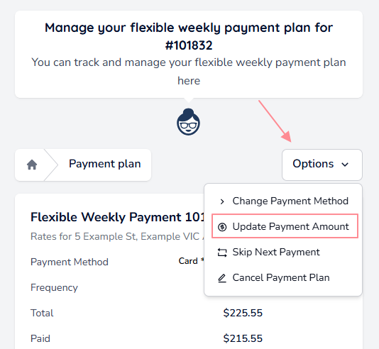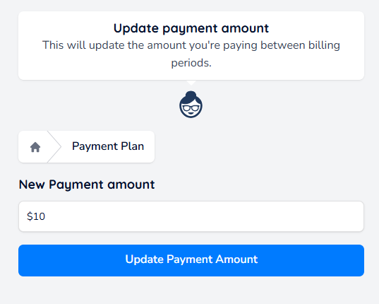 Enter the new amount you would like to pay on each instalment moving forward, and then click 'Update Payment Amount' to confirm your changes.