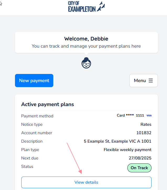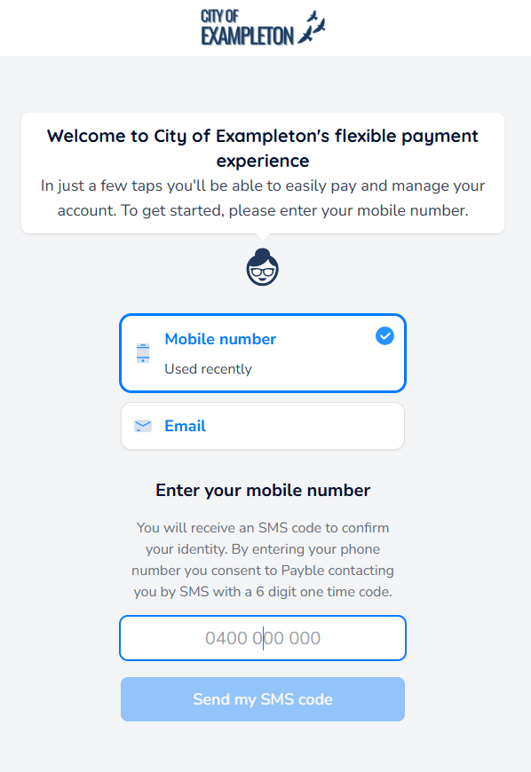 Open Payble by either following the QR code on your rates notice, the link in a previous text message from Payble or directly from your Council's website.