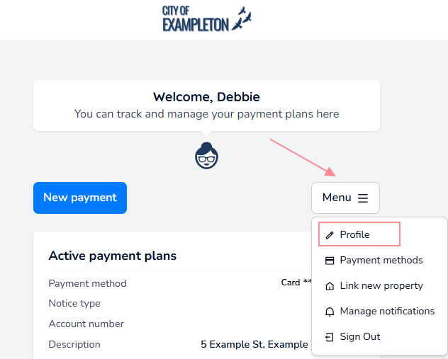 From the Menu drop down, select Profile.