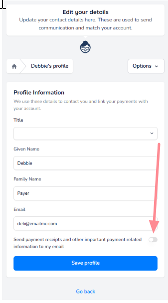 This document outlines how to enable (or disable) payment receipts being sent to your email.