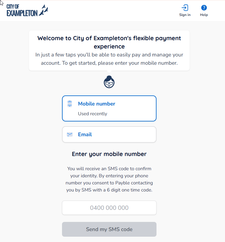 You will be prompted to sign in using either your mobile number or email address (if supported.)